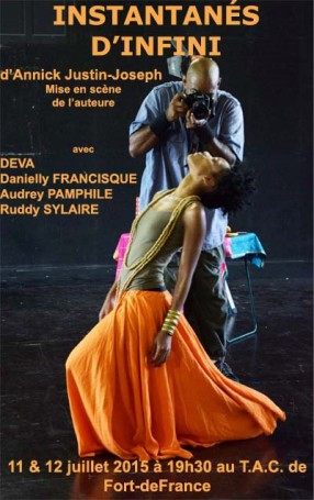 Le théâtre d’Annick Justin Joseph est empreint des conditions plus générales d’émergence du théâtre en Martinique. Que serait celui-ci sans l’apport de la poésie césairienne ? Cette double filiation théâtre et poésie est au centre du travail « Instantanés d’infini » présenté dans le cadre du 44ème festival de Fort-de-France. La poésie est une échappée, une liberté, elle joue sur la polysémie, on comprendra que les rares endroits où elle est encore lue soient les lieux d’enfermements, comme les prisons. Le titre de la pièce d’Annick Justin Joseph est en lui-même énigmatique. Il tire du côté de l’oxymore. Comment ce qui est relatif à un instant donné peut-il être infini ? L’opposition des deux termes est redoublée par le pluriel d’instantanés et le singulier d’infini.
